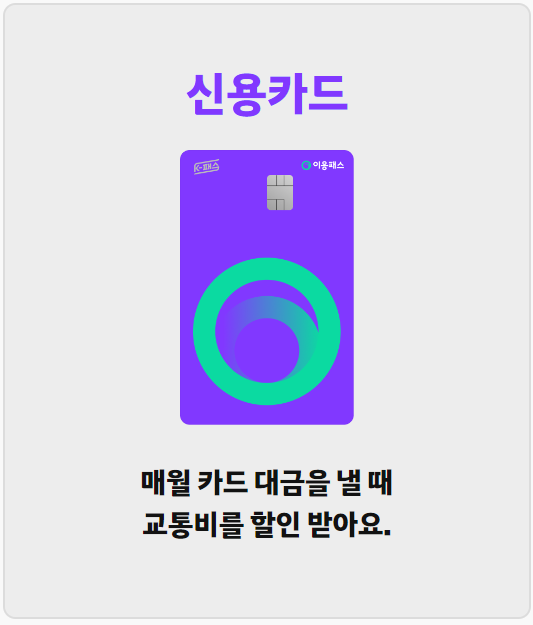 신용카드- 매월 카드대금을 낼때 교통비를 할인받습니다.