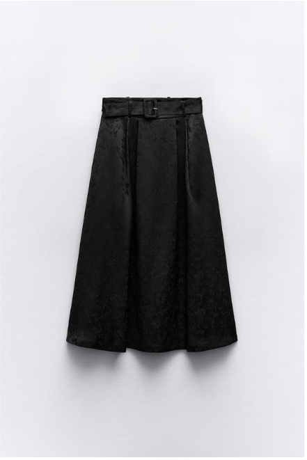 5. 타이트핏 니트 블레이저 + 벨트 자카드 미디 스커트(블랙)
