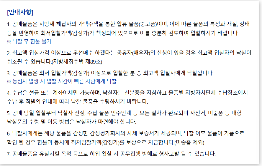 작년 공동경매 참여 후기로 봐서는 경쟁이 엄청 치열할것 같으니 마음 비우고 구경삼아 가보시는 것도 좋을 것 같습니다.