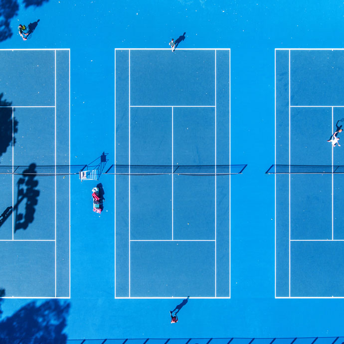 부드러운 테니스공을 이용하여 네트를 사이에 두고 라켓으로 이를 치고받으며 경쟁하는 스포츠입니다.